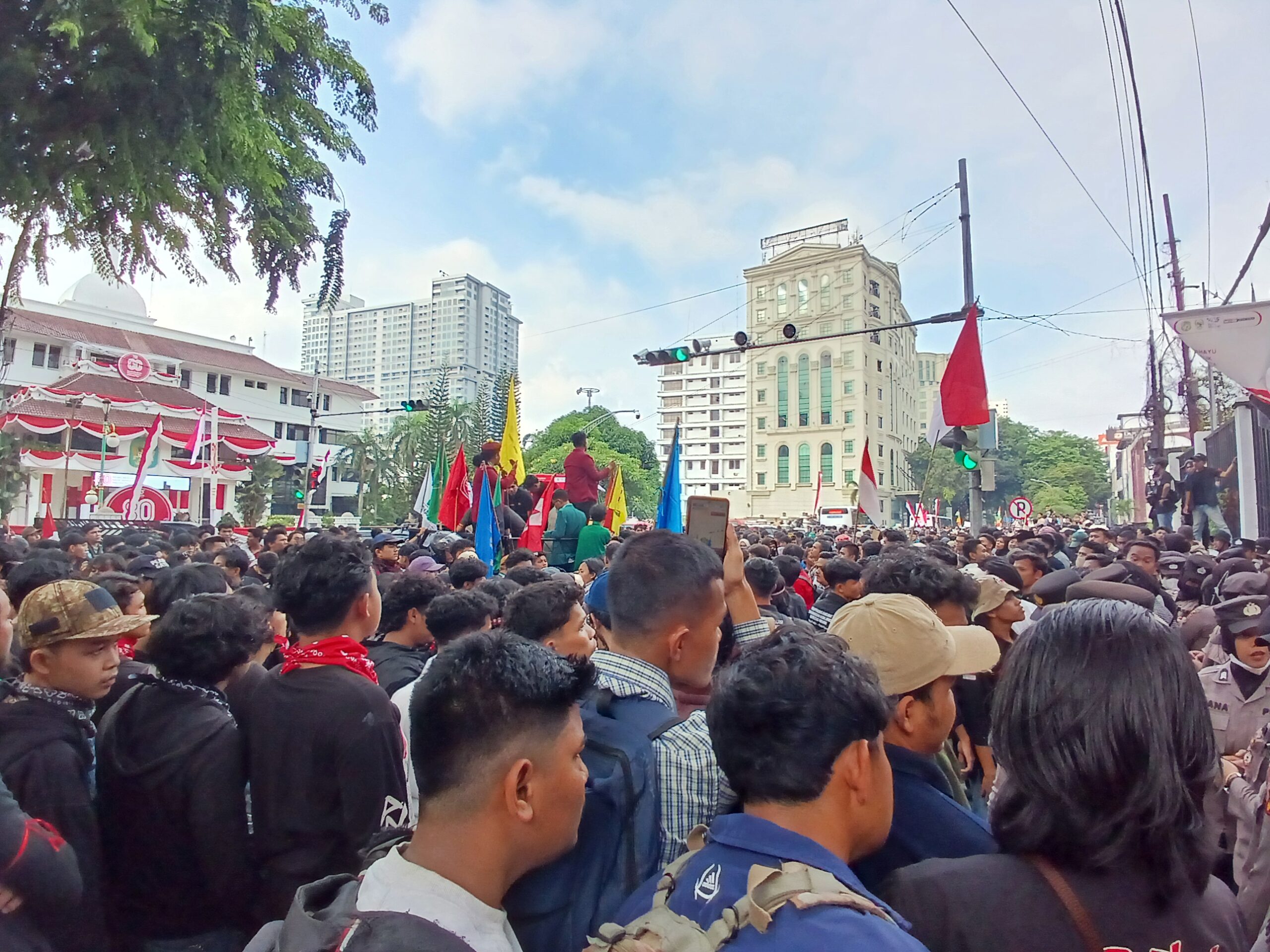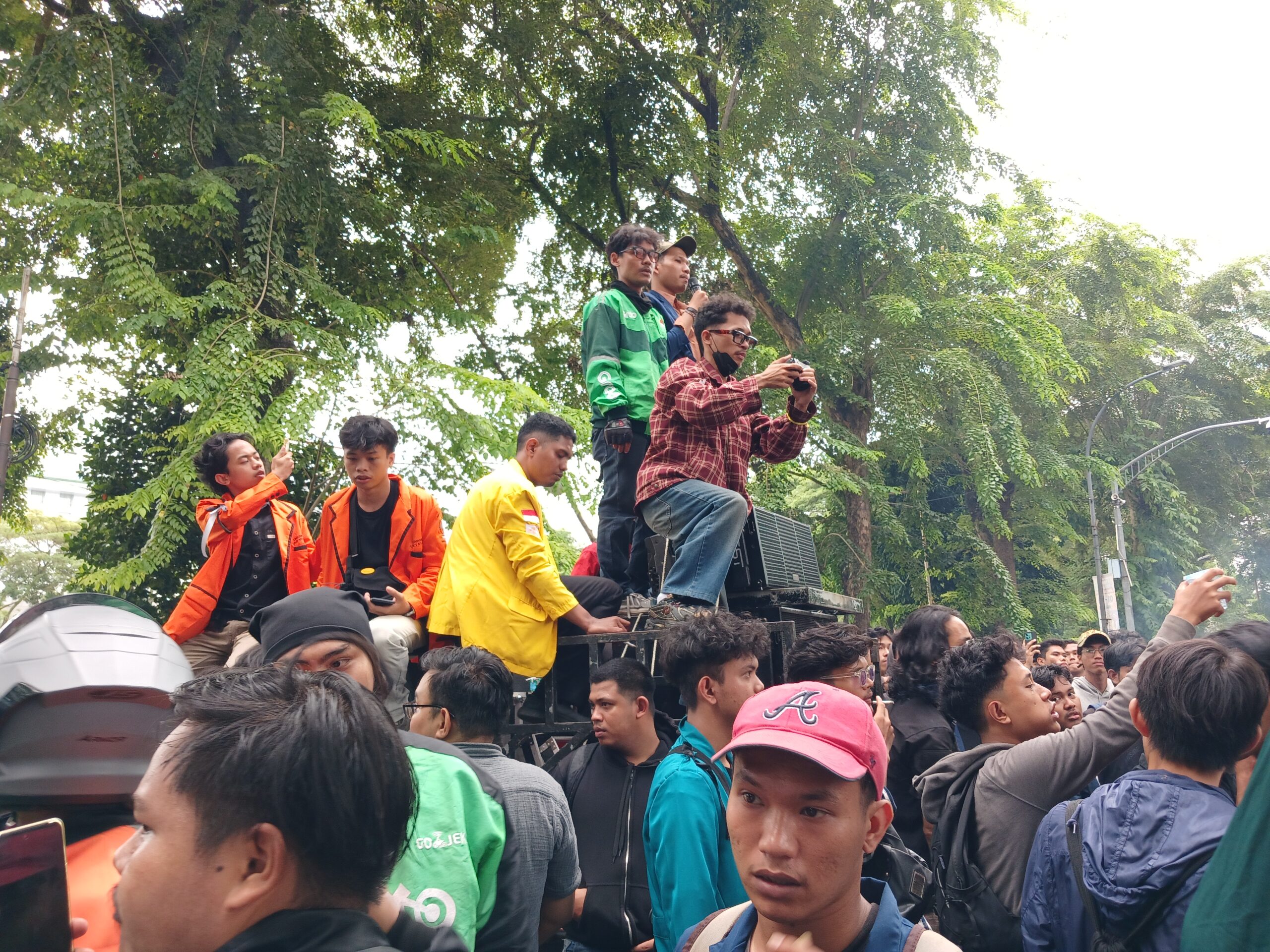 Mahasiswa dari berbagai kampus mulai berkumpul sejak pukul 14.30 WIB. Massa menyanyikan yel-yel kekecewaan terhadap Polri, menuntut transparansi dan akuntabilitas atas kematian Affan.