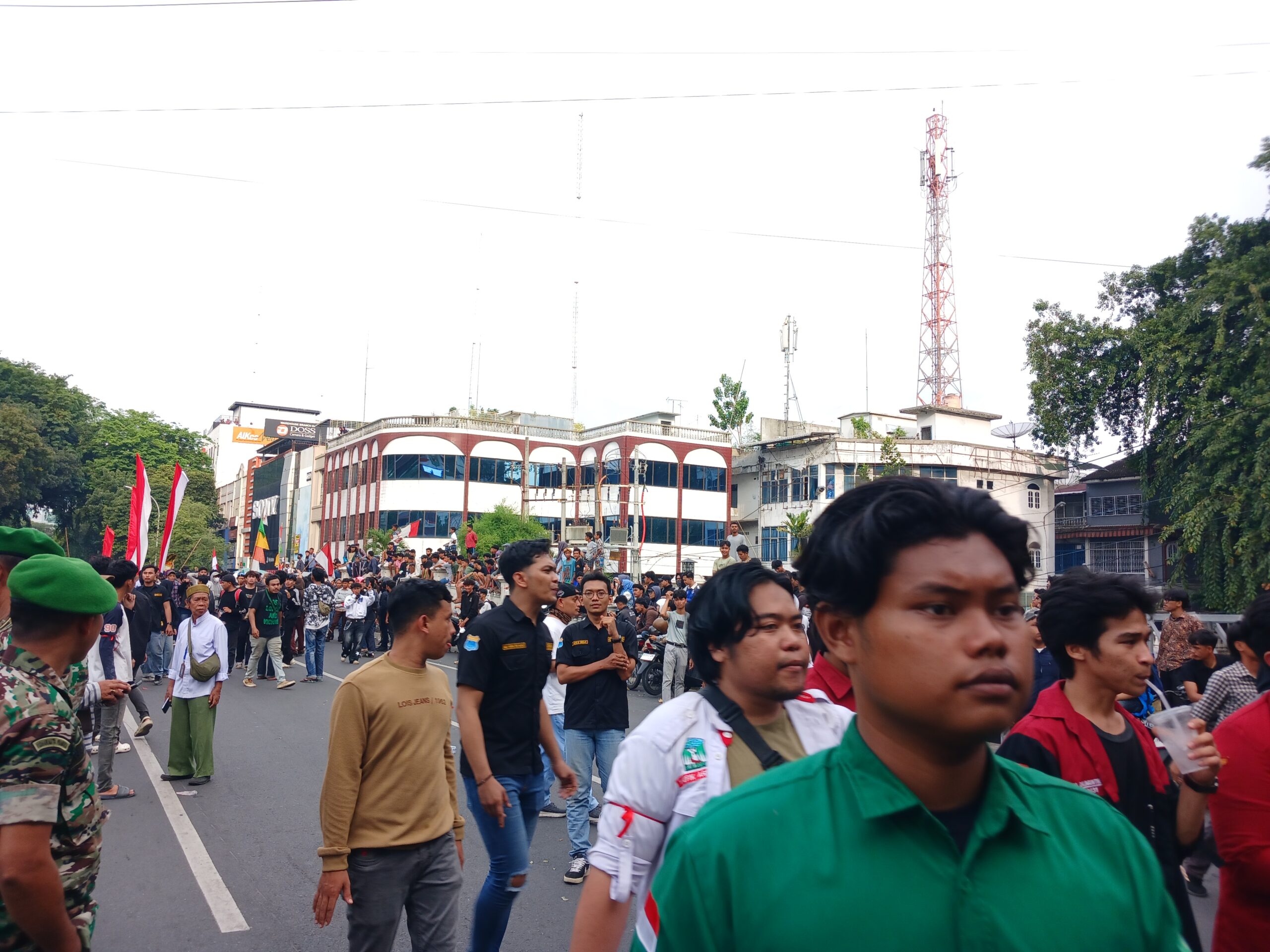 Ribuan mahasiswa dari berbagai kampus memadati kawasan Ratu Samban, menuntut pencabutan Inpres 1/2025 dan pengusutan kasus Driver Ojol Affan Kurniawan yang tewas dilindas rantis Brimob.