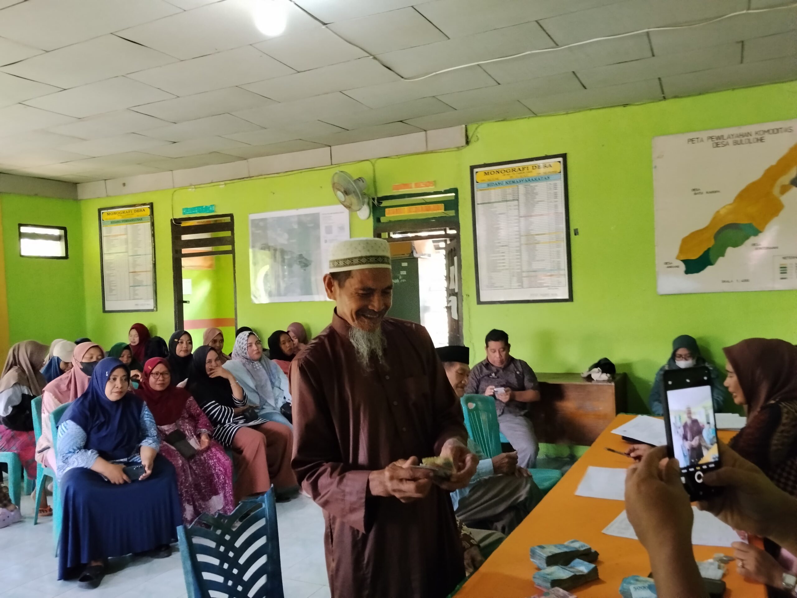 Penyaluran insentif dilakukan secara terbuka di aula kantor desa agar prosesnya dapat disaksikan langsung oleh masyarakat.