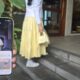 Sekitar 500 meter dari kantor KPU, Rico-Zaki beserta ketua partai pendukung turun dari becak untuk berjalan kaki menuju kantor KPU.