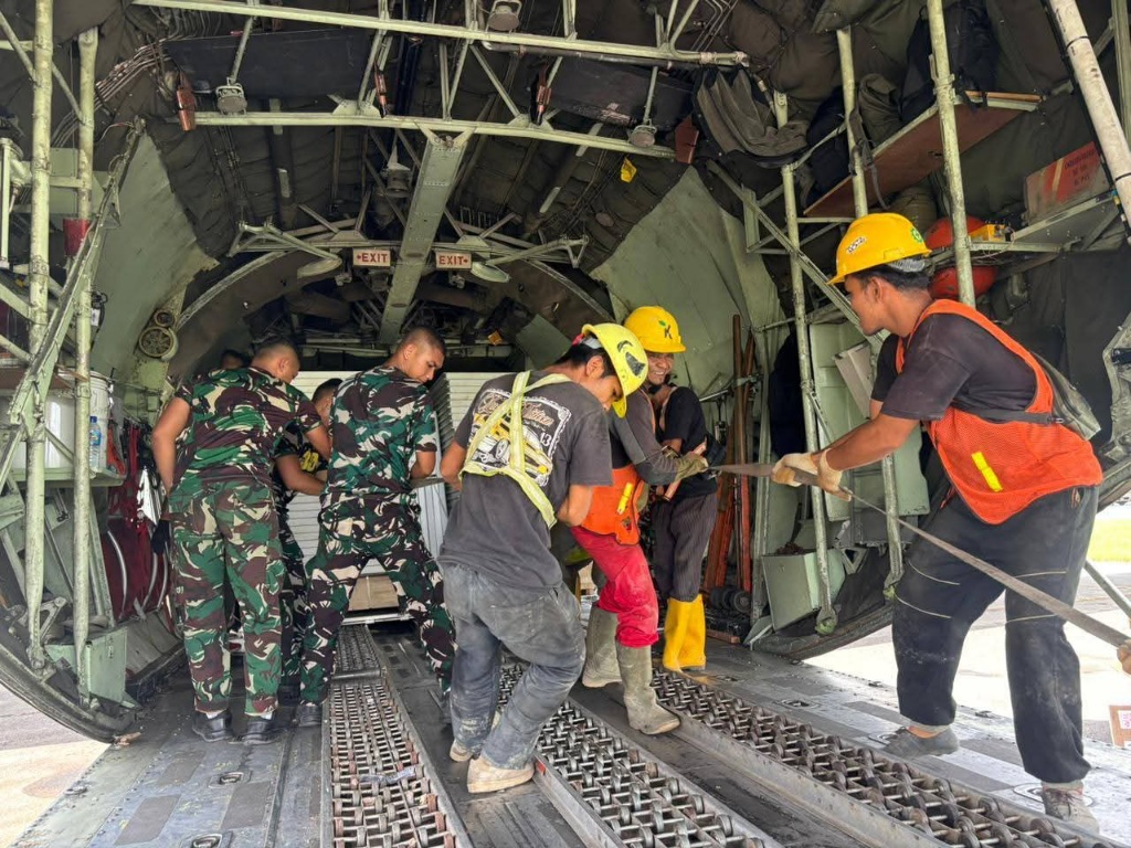JAKARTA (Waspada.id): TNI Angkatan Udara (TNI AU) mengirimkan material hunian sementara (huntara) seberat 9.932 kg beserta alat kesehatan 1.500 kg melalui pesawat C-130 Hercules, Sabtu (24/1/2026). Pengiriman dilakukan dari Lanud Halim Perdanakusuma menuju Lanud Soewondo, mendukung percepatan pemulihan pascabencana.