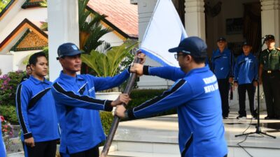 LANGSA (Waspada) : Sebanyak 123 atlet yang tergabung dalam kontingen Kota Langsa untuk mengikuti Pekan Olahraga Pelajar Daerah Aceh (POPDA) XVII di Aceh Timur dilepas oleh Pj Wali Kota Langsa, di Pendopo Wali Kota Langsa, Selasa (2/7) petang.