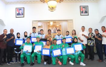 Ketua Pengprov FOBI Sumut, Peter Suhendra didampingi Sekretaris Bobby C Halim dalam keterangannya di Posko Publikasi PON XXI/2024 Kantor Dispora Sumut, Jl. Pancing Medan, Senin (5/6), mengatakan target 3 emas yakin tercapai dari 10 nomor ditandingkan.