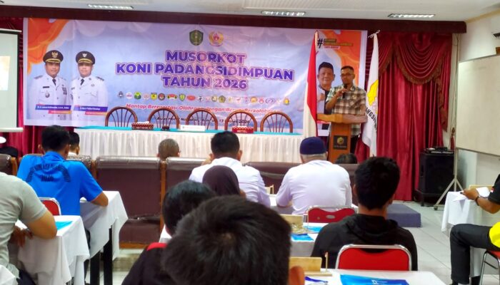 P. SIDIMPUAN (Waspada.id): Hasanuddin Sipahutar terpilih secara aklamasi sebagai Ketua Komite Olahraga Nasional (KONI) Kota Padangsidimpuan Periode 2026-2030 dalam Musyawarah Olahraga Kota (Musorkot) KONI dia Aula Natama Hotel Padangsidimpuan, Jumat (13/3/2026)