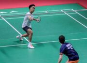 Bertanding di Istora Senayan, derbi Fajar/Fikri vs Leo/Bagas berlangsung sengit sejak awal gim pertama.