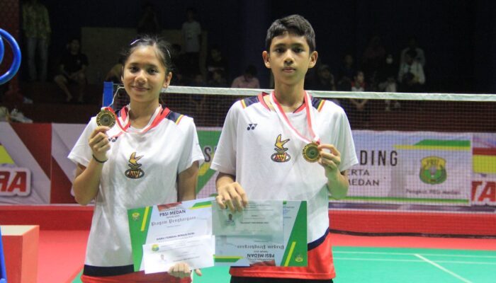 MEDAN (Waspada): Kejuaraan Kota (Kejurkot) PBSI Medan 2022 berlangsung sukses di Gor PBSI Sumut, Kamis (10/11). Ada sosok yang mencuri perhatian penonton, yakni kakak beradik Nazura Tirsyah (kelas remaja putri) dan Yuga Gustisyah (kelas pemula putra).