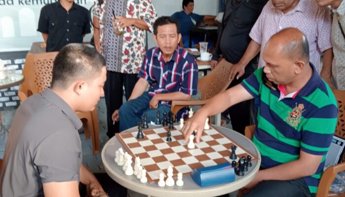 INSAN catur Sumut, Sabar Tobing (kiri) menyaksikan jalannya pertandingan Kejuaraan Catur Terbuka Piala Evil Master Club 2026. Waspada.id/Ist