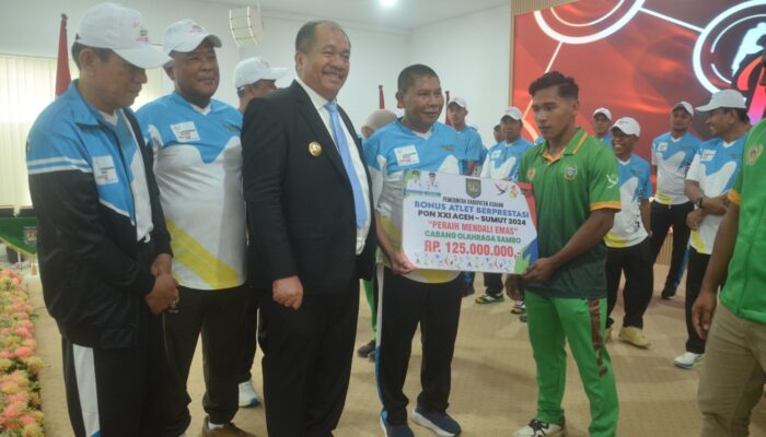 Pemberian bonus dilakukan di Aula Melati, Kantor Bupati Asahan, Rabu (1/10), sekaligus dalam rangkaian peringatan Hari Olahraga Nasional (Haornas). Untuk PON Aceh-Sumut 2024, Kab Asahan berhasil menyumbangkan 37 medali yang terdiri dari 18 emas, 10 perak, dan sembilan perunggu.
