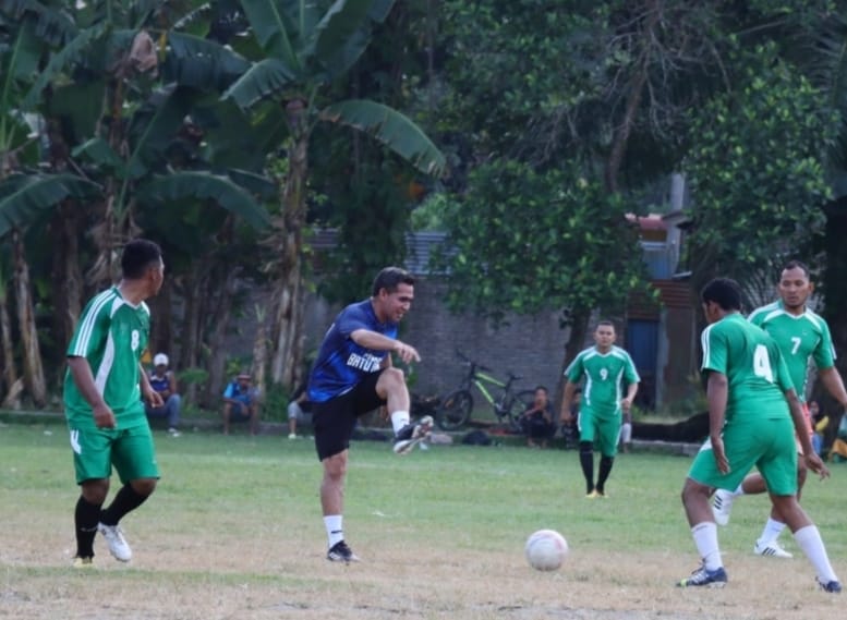 BATUBARA (Waspada): Tim Sepakbola Polres Batubara mengungguli tim Persatuan Sepakbola Desa Aras (PSDA) dengan skor 4-3 dalam laga persahabatan di Lapangan Desa Aras, Kec Air Putih, Batubara, Kamis (23/2).