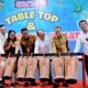 Bupati Sergai Darma Wijaya, Ketua DPRD Sergai M Ilham, Dandim 0204/DS Letkol Czi Yoga Febrianto, Kajari Sergai M Amin SH, Ketua KONI Sergai Aspul A Lubis, Ketua Askab PSSI Sergai Darma Sutra, Kapolres Sergai AKBP Oxy Yudha Pratesta bersama tim juara, Senin (26/6). Waspada/Edi Saputra