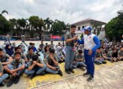 Instruktur safety riding PT Indako Trading Coy, Eka Yolahati, memberikan pemaparan mengenai teknik berboncengan yang aman, sebagai bagian dari upaya menumbuhkan semangat #cari_aman berlalu lintas di kalangan pelajar.