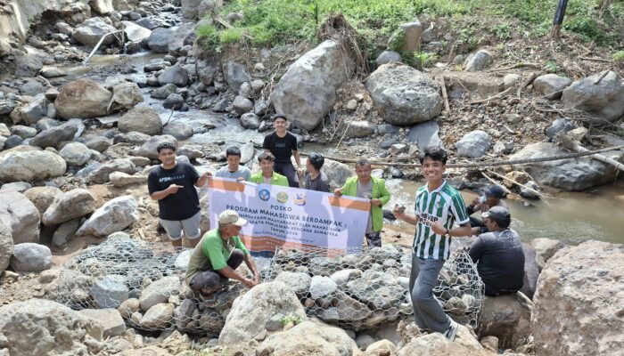 Dalam upaya mitigasi bencana, tim pengabdian juga melakukan perbaikan bendungan dengan memasang bronjong galvanis sepanjang enam meter. Perbaikan ini bertujuan memperkuat struktur penahan aliran air agar tidak kembali merusak permukiman warga saat terjadi hujan deras di kemudian hari.