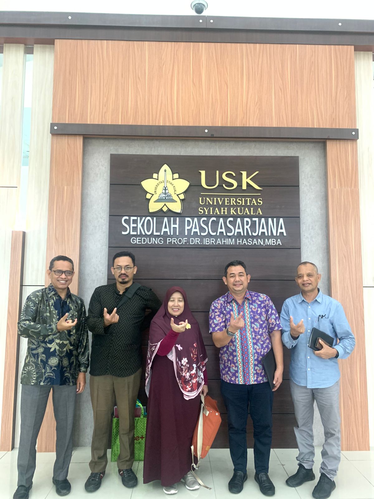 BANDA ACEH (Waspada): Direktur Sekolah Pascasarjana, Prof. Dr. Hizir dan Koordinator Program Studi (Prodi) Doktor Pendidikan IPS, Dr. Muhammad Aulia, MTESOL, M.A. menyambut kedatangan Dr. Erlina Wiyanarti, M.Pd., Bendahara Asosiasi Program Studi Pendidikan IPS Indonesia (APRIPSI) yang juga Ketua Prodi Studi S2 dan S3 Pendidikan IPS, Fakultas Pendidikan Ilmu Pengetahuan Sosial, Universitas Pendidikan Indonesia (UPI).