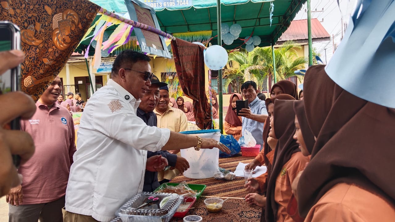 KUTACANE (Waspada.id): Bupati Aceh Tenggara, HM Salim Fakhry, SE, MM didampingi Kadis Pendidikan dan Kebudayaan, Julkipli, S.Pd, M.Pd, Kadis Kominfo, Zulfan Harijadi, menghadiri acara silaturahmi dan pagelaran proyek inovasi menu oleh siswa SMPN 2 Kutacane, Sabtu (15/11).