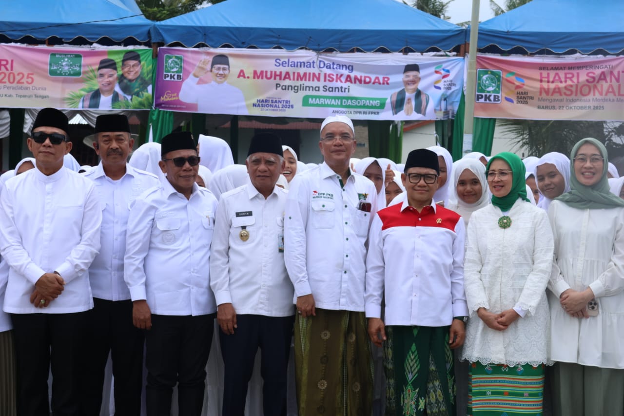 BARUS (Waspada.id): Menteri Koordinator Bidang Pemberdayaan Masyarakat, Muhaimin Iskandar, hadiri upacara peringatan Hari Santri Nasional di Tugu Titik Nol Peradaban Islam Nusantara, Barus, Kabupaten Tapanuli Tengah, Rabu (22/10/2025)
