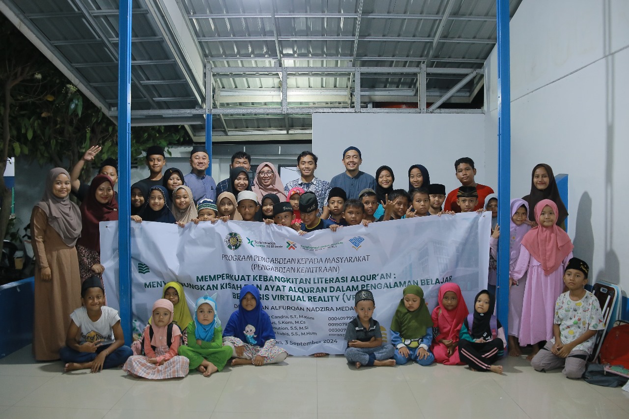 MEDAN (Waspada): Dosen Fakultas Ilmu Komputer dan Teknologi Informasi (Fasilkom-TI) Universitas Sumatera Utara (USU) menggelar Pengabdian Kepada Masyarakat (PKM) untuk mempercepat kebangkitan literasi Alquran dengan pengalaman belajar berbasis Virtual Reality (VR) kepada santri di Yayasan Alfurqan Nadzira Medan.