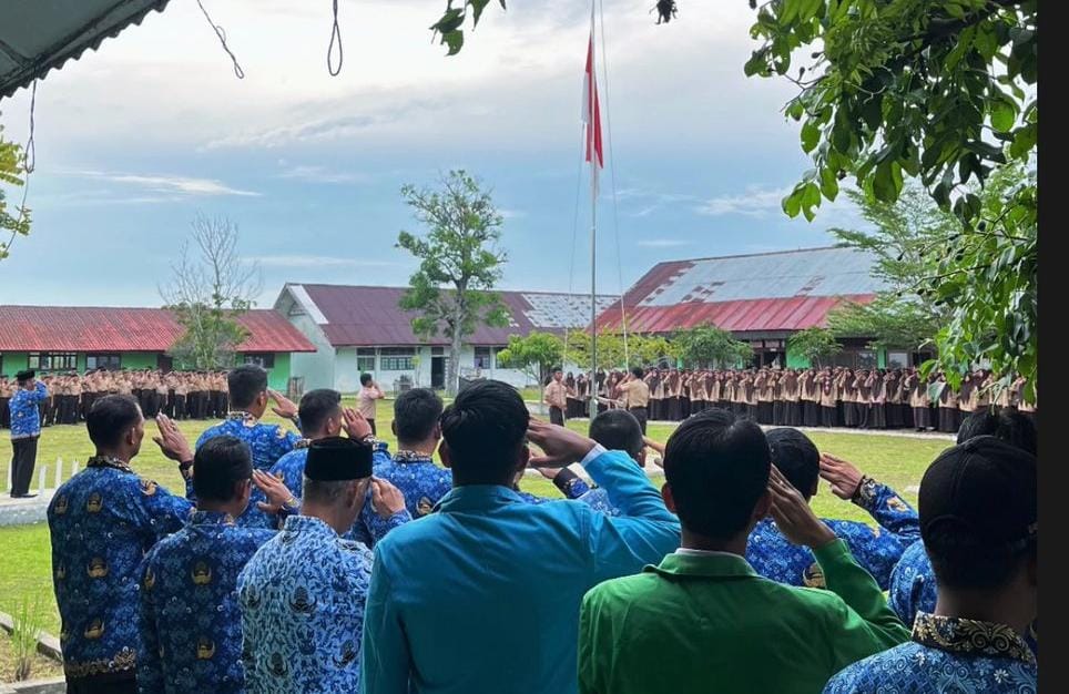 LANGSA (Waspada): Keluarga besar Madrasah Aliyah Negeri (MAN) 1 Langsa melaksanakan upacara peringatan Hari Kesaktian Pancasila di halaman sekolahnya, Rabu (1/10).