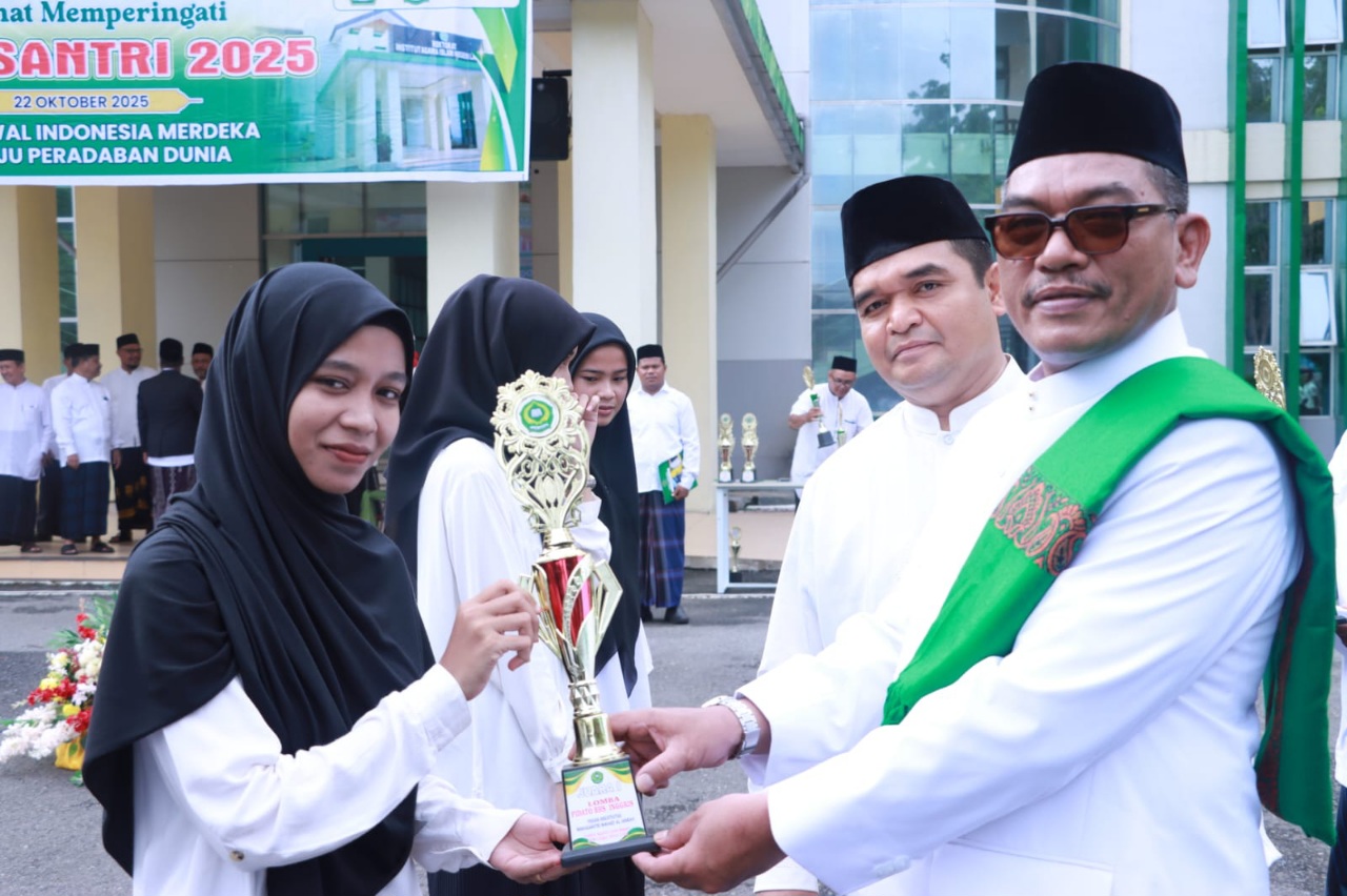 “Santri tidak boleh menjadi penonton dalam perubahan zaman, santri harus hadir sebagai pelaku sejarah baru, menjadi pembawa nilai-nilai Islam rahmatan lil ‘alamin dalam membangun peradaban dunia yang damai, adil, dan berkeadaban,” ujarnya.