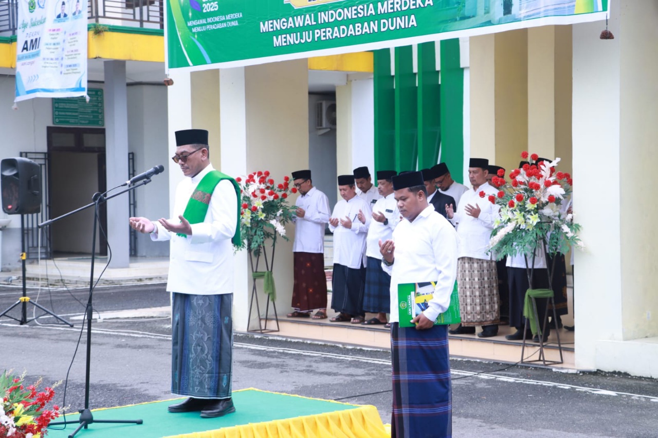 Rektor IAIN Langsa Prof. Dr. H. Ismail Fahmi Arrauf Nasution, MA mengatakan saat membacakan amanat Menteri Agama Republik Indonesia (Menag RI) Prof. Dr. KH. Nasaruddin Umar, MA pada upacara Peringatan Hari Santri di halaman Biro Rektorat kampus Institut Agama Islam Negeri (IAIN) Langsa, Rabu (22/10).