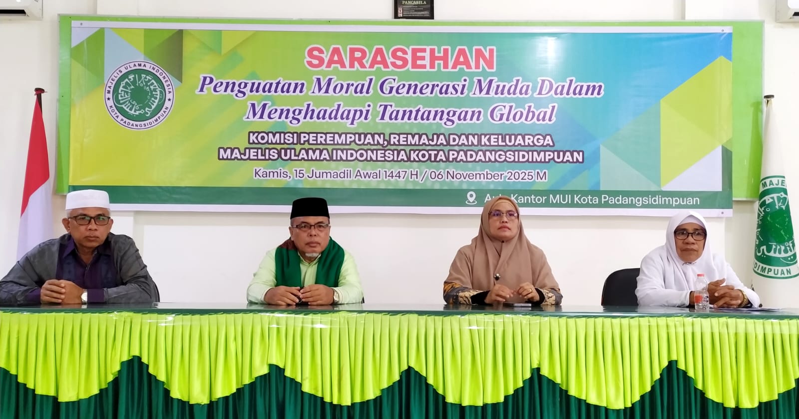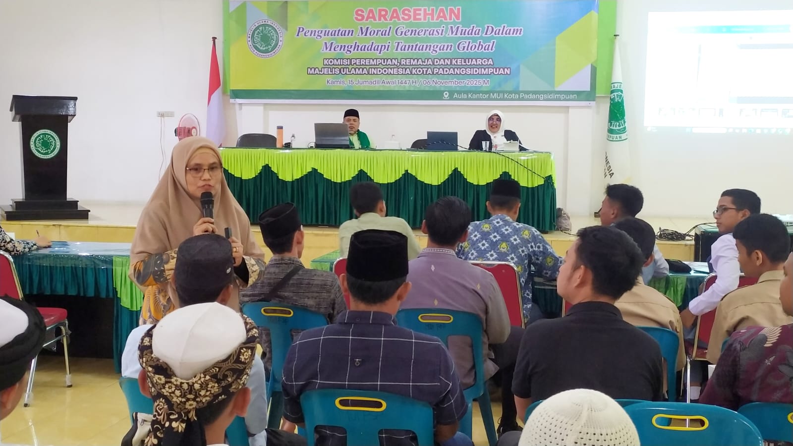P.SIDIMPUAN (Waspada.id) : Komisi Perempuan, Remaja dan Keluarga, Majelis Ulama Indonesia (MUI) Padangsidimpuan memberikan edukasi dan pencerahan kepada generasi muda melalui sarasehan untuk memperkuat moral generasi dalam menghadapi tantangan global, Kamis (6/11/2025).