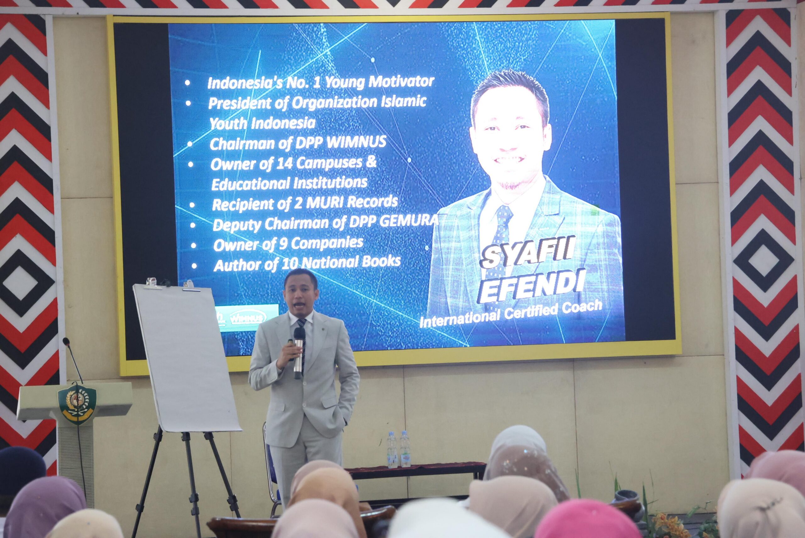 Materi seminar meliputi strategi mentalitas guru inspiratif, penguatan spiritual sebagai fondasi pendidik, strategi kemandirian finansial guru, kemampuan berpikir kompleks di era next normal, hingga pengembangan kompetensi pendidikan, entrepreneurship, leadership, dan public speaking.