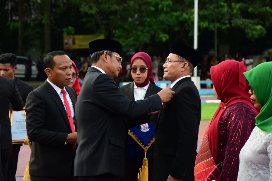 Tanda kehormatan secara simbolis disematkan Pj.Bupati Deliserdang kepada 15 orang perwakilan ASN. Diantara penerima tanda kehormatan tersebut yakni Kepala Bappedalitbang Deliserdang Dr.Ir.Remus Hasiholan Pardede, MSi, yang menerima SKS XXX Tahun.