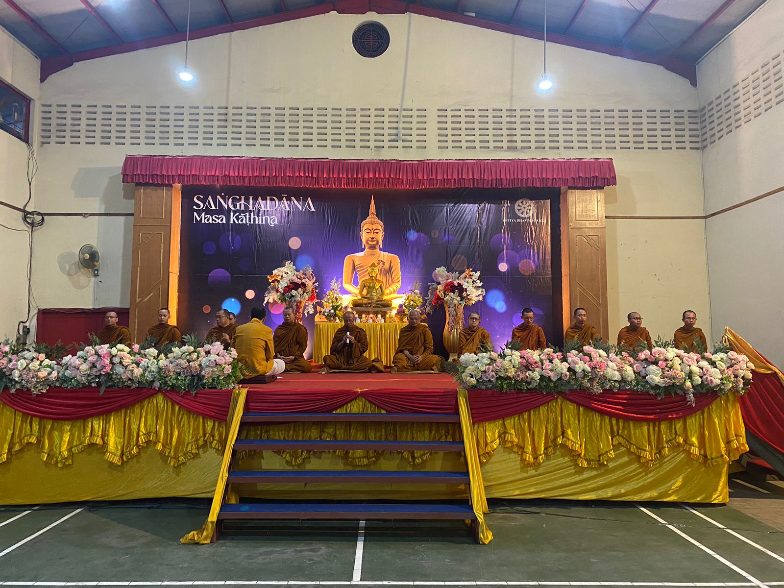 KISARAN (Waspada): Sebelas Bhikkhu ditambah seorang Samanera hadiri perayaan Sanghadana Masa Kathina 2567 TB/2023 yang diselenggarakan oleh Cetiya Dhammacakka Kisaran, Jumat (17/11) di Aula Kiu Lie Tong, Kisaran.