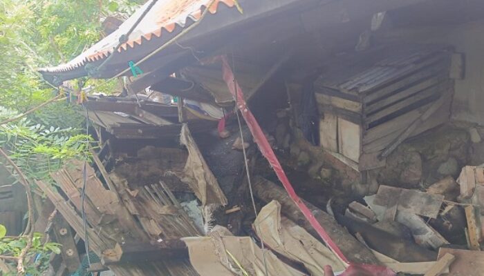P.SIDEMPUAN (Waspada): Dua rumah di Gang Air Bersih, Lingkungan III, Kelurahan Sitamiang Baru, Kecamatan Padang Sidempuan Selatan, Kota Padang Sidempuan, rusak total akibat terjangan tanah longsor, Rabu (9/11/2022) malam.