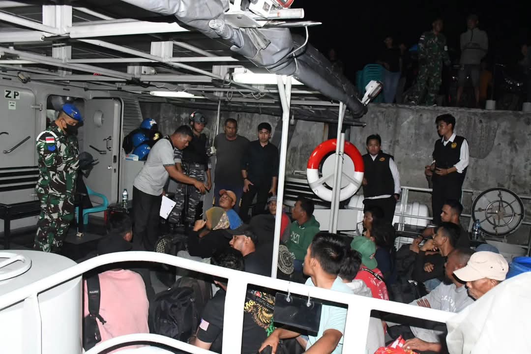 Kapal Motor (KM) Sari Ulan GT. 15 yang mengangkut mereka dihentikan tim patroli F1QR saat berlayar di jalur rawan penyelundupan. Para penumpang, terdiri dari 18 pria dan 2 wanita, berasal dari berbagai daerah seperti Tanjungbalai, Asahan, Aceh, NTB, Jawa Barat, Lampung, dan Jambi.