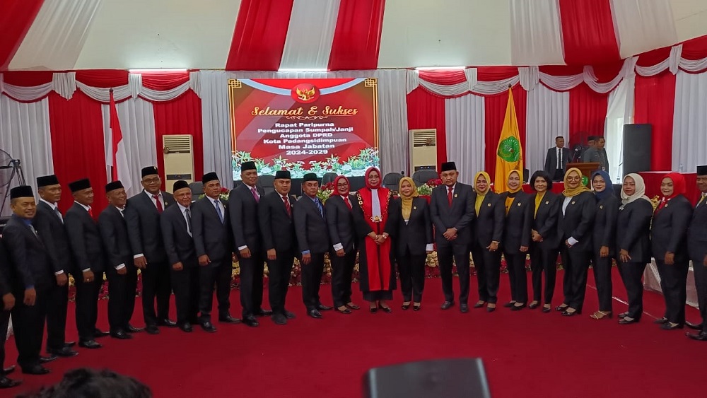 Kader Partai Golkar, Sri Fitrah Munawaroh SAk dan Kader PDIP Hj Taty Ariyani Tambunan SH ditunjuk menjadi pimpinan DPRD Kota P.Sidimpuan untuk sementara. Pelantikan diawali dengan pengambilan sumpah dan janji Jabatan.