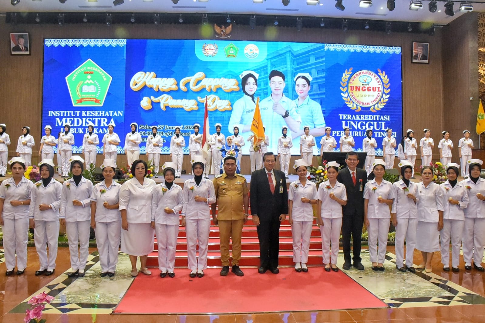 “Kalau pemerintah daerah berusaha mencari solusi atas persoalan masyarakat dan meningkatkan kesejahteraan, maka bidan dan perawat mengabdikan diri secara tulus, ikhlas, tanpa membedakan suku, ras, dan agama. Hakikatnya sama, yaitu pengabdian,” kata Wabup Lom Lom Suwondo ketika menghadiri Upacara Capping and Pinning Day (penyematan topi dan pin) Mahasiswa Program Studi Kebidanan dan Keperawatan (Diploma III dan Sarjana) Institut Kesehatan Medistra (IKM) di IKM Hall, Jalan Medan–Lubukpakam, No.68, Selasa (27/1/26).