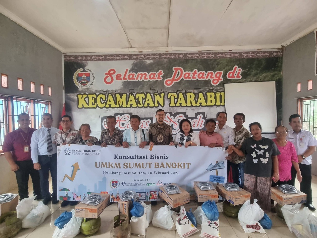 HUMBAHAS (Waspada.id): Sebanyak 50 Usaha Mikro Kecil dan Menengah (UMKM) terdampak banjir dan longsor di Sumatera Utara mengikuti Konsultasi Bisnis ‘UMKM Sumut Bangkit’ yang digelar Kementerian UMKM RI di Kecamatan Tarabintang, Rabu (18/2/2026). Kegiatan ini juga menyertakan penyerahan bantuan dari PT. GoTo Gojek, Tokopedia, Tbk dan Bank Sumut.
