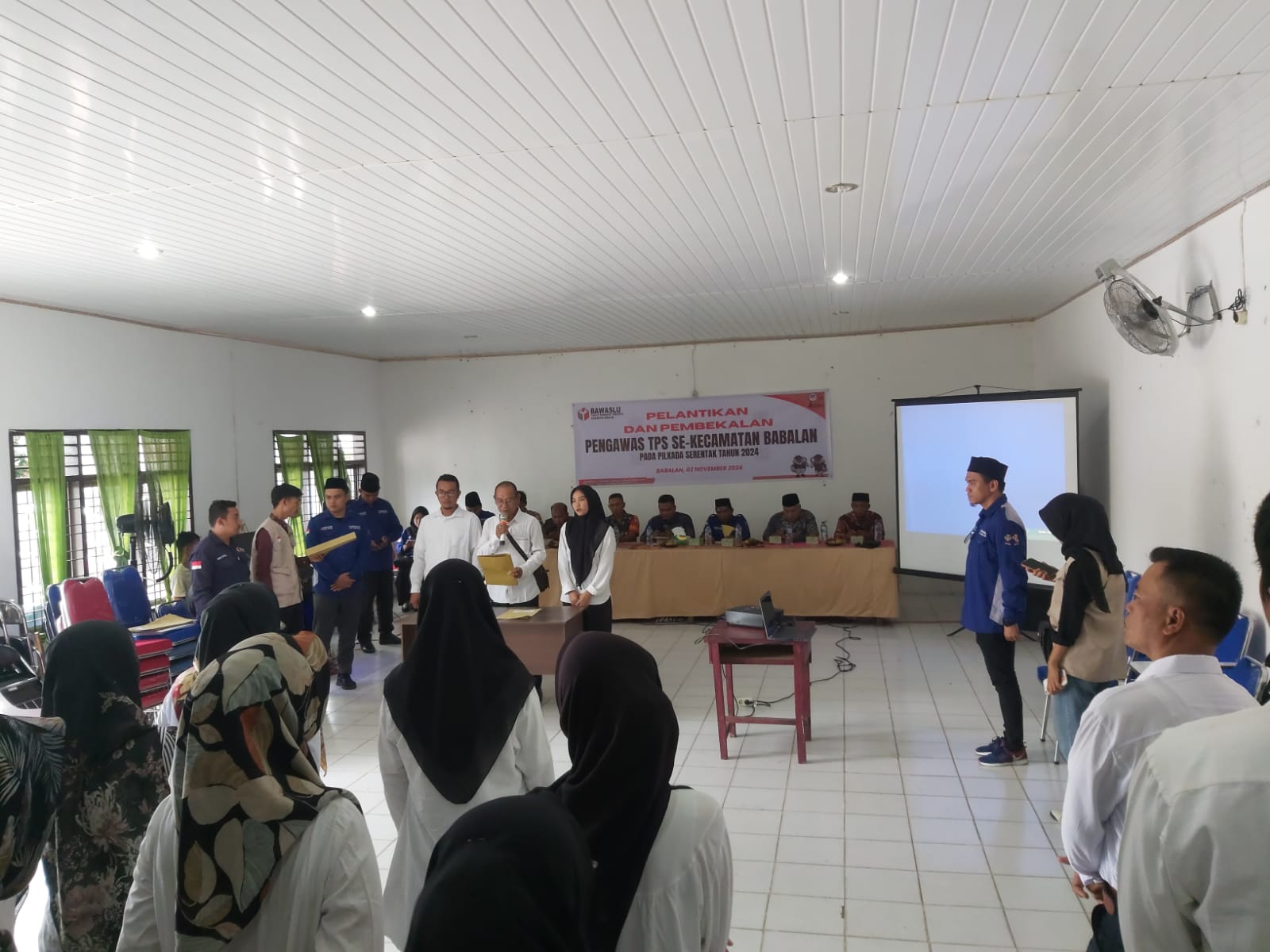 P.BRANDAN (Waspada): Sebanyak 81 Pengawas Tempat Pemungutan Suara (PTPS) se Kecamatan Babalan pada Pemilihan Umum Kepala Daerah (Pilkada) 2024 dilantik di Gedung SKB P.Brandan, Minggu (3/11/2024).