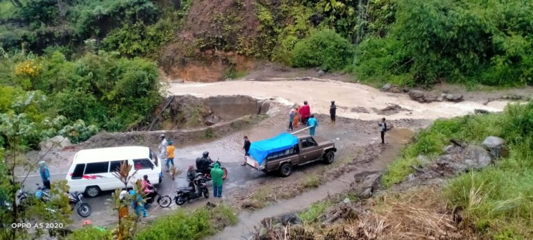 Akibatnya, jalan antara Desa Sopotinjak-Bulusoma Kec. Batang Natal, banjir, berlumpur dan bebatuan menghantam menimpa badan jalan.