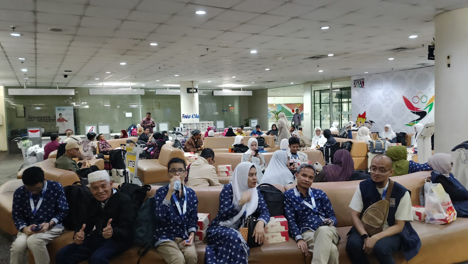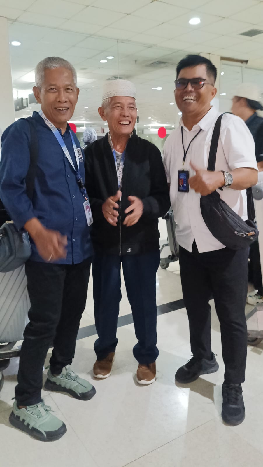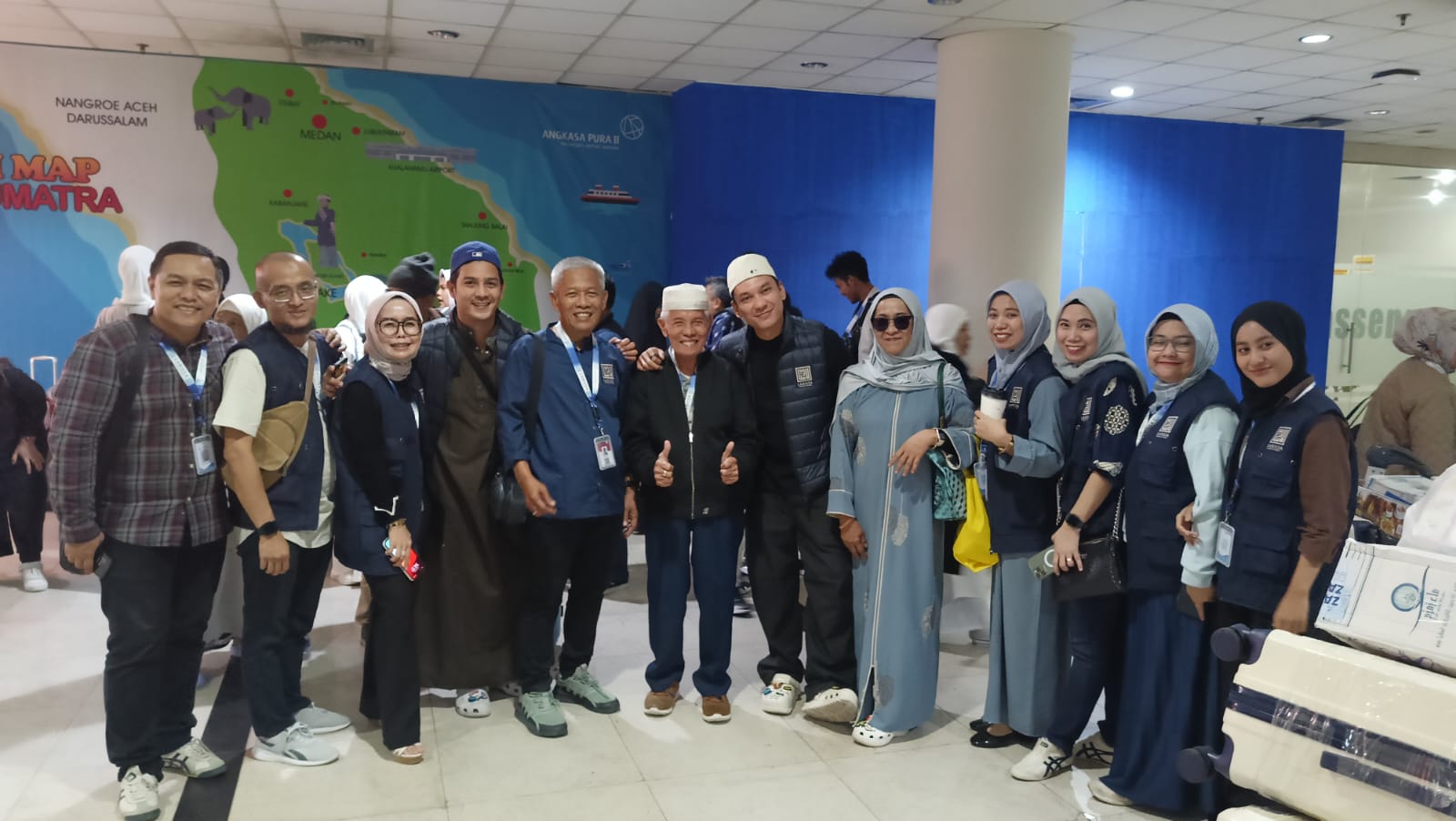 Jamaah yang berasal dari Medan, Pekanbaru, Padang dan Jakarta diangkut pesawat Saudia dari Bandara King Abdul Aziz, Jeddah sesuai jadwal tiba di KNIA pukul 12:25.