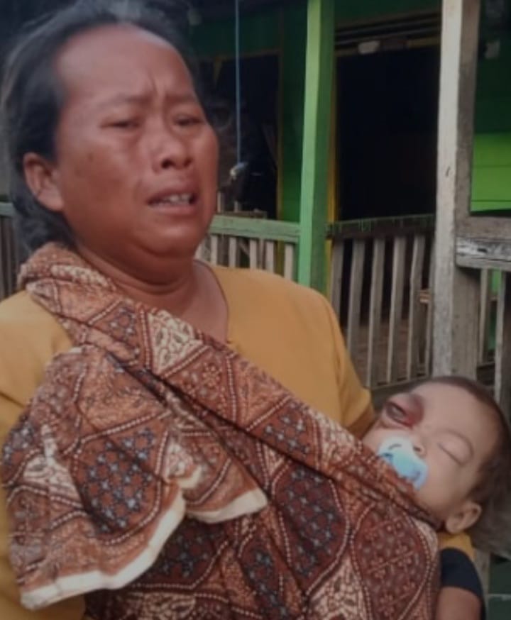 Sang ibu, lanjut Miswan hanya bisa menangis sebab kekhawatirannya semakin bertambah pembengkakan pada matanya semakin membesar dan kelopak mata terlihat memerah.