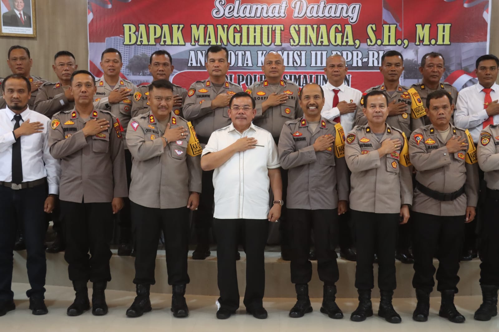 Kehadiran politisi Partai Golkar tersebut diterima langsung Kapolres Simalungun AKBP Choky Sentosa Meliala dan jajarannya di Aula Andar Siahaan, Mako Polres Simalungun.