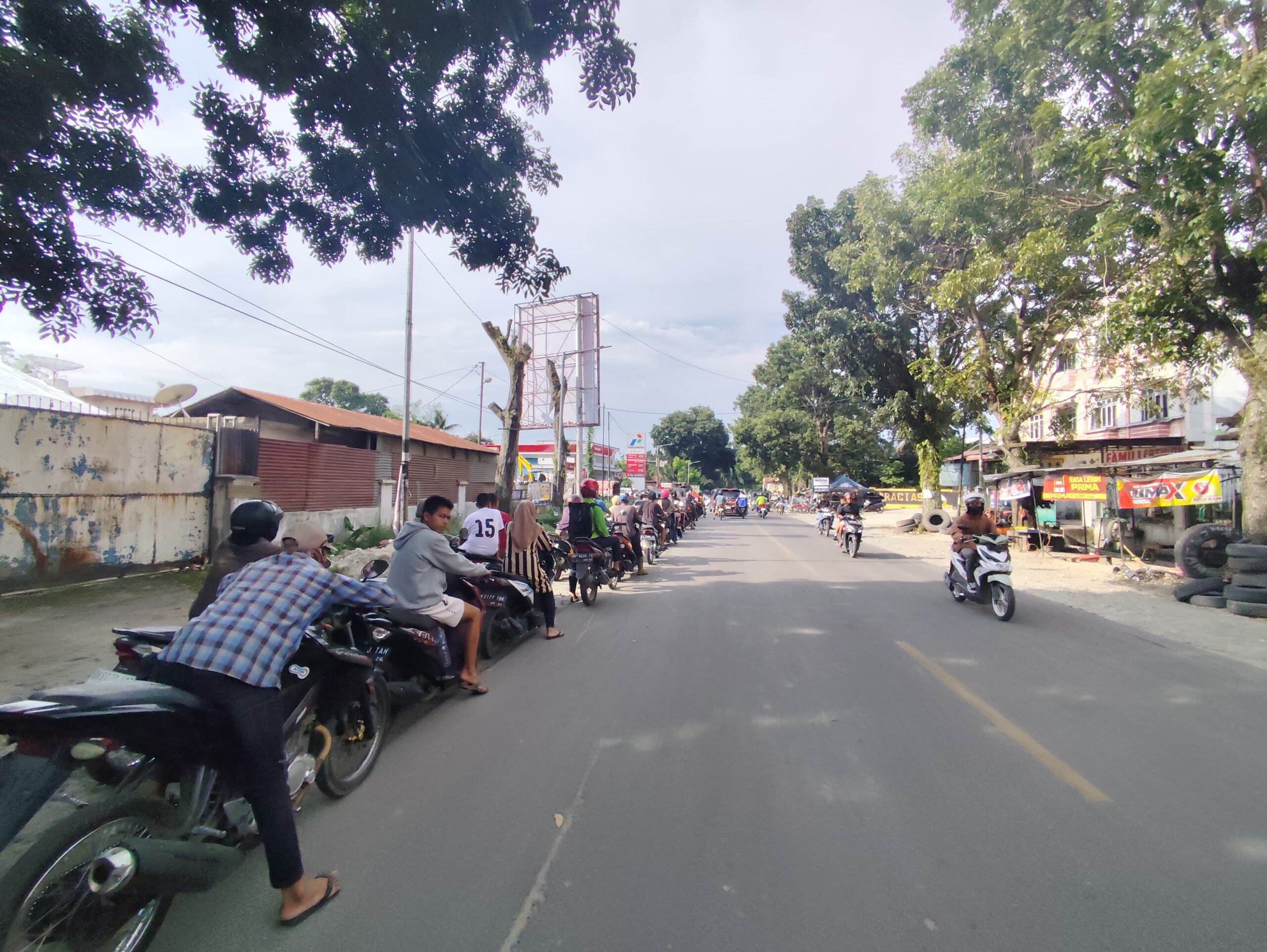 “Tadi ke SPBU Parluasan, habis. BBM di tangki udah menipis. Rusak motor kalau kedip-kedip, malah tambah pengeluaran ke bengkel nanti kalau sudah kena injeksinya,” tutur bapak satu anak itu di kawasan SPBU Jalan Sisingamangaraja.