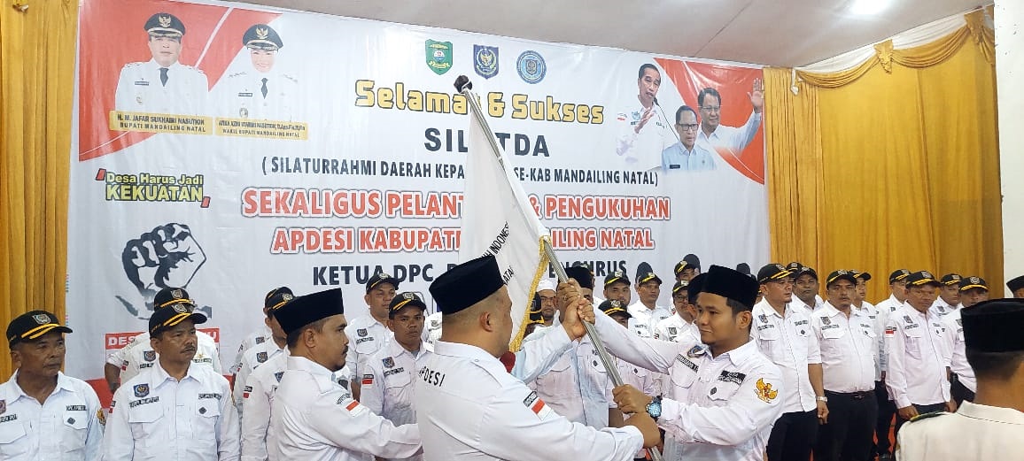 DPC APDESI Madina dikukuhkan langsung oleh Ketua DPD APDESI Sumut Manten Aperi Simbolon, SH ditandai dengan penyerahan pataka yang dikibarkan langsung oleh ketua terpilih DPC APDESI Madina Miswaruddin, SE dengan Sekretaris Zulham Riad dan Bendahara M. Ali Atas Sitompul.