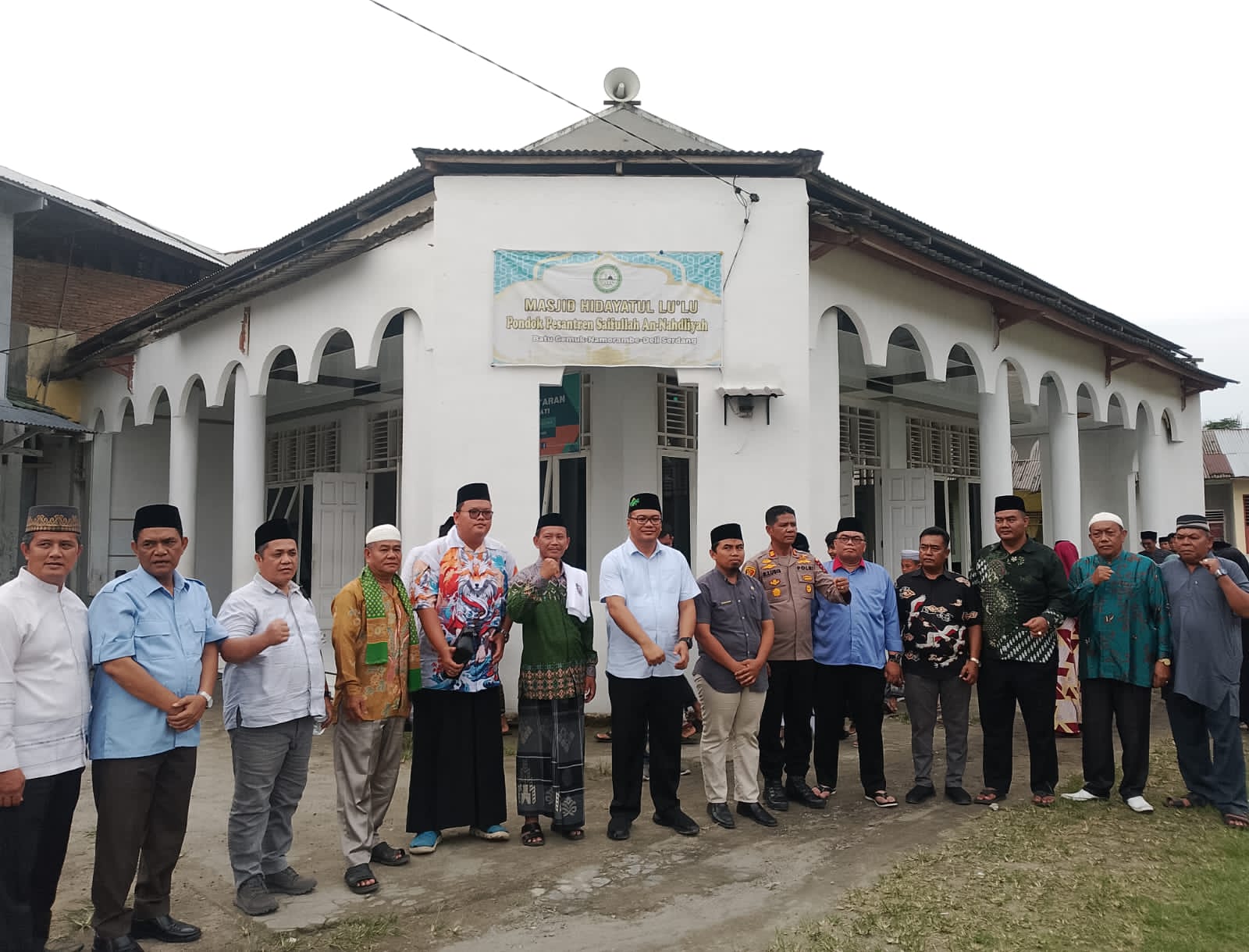 DELISERDANG (Waspada): dr. H. Asri Ludin Tambunan menghadiri peletakan batu pertama dan syukuran pembangunan sanitasi Santri Pondok Pesantren (Ponpes) Saifullah An-Nahdiyah di Batu Gemuk, Kecamatan Namorambe, Deliserdang, Juma (25/10/24).