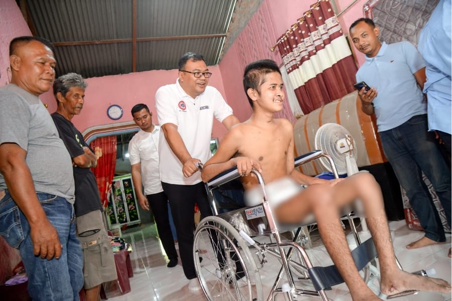 “Dari kami dari Ikatan Dokter Indonesia Cabang Deliserdang menyalurkan bakti sosial dari para dokter Indonesia kepada masyarakat Deliserdang,” kata Asri Ludin Tambunan usai menyerahkan bantuan kursi roda untuk Raisyah, warga Dusun 7 Desa Pematang Biara Kecamatan Pantai Labu, Kamis (14/11) sore.