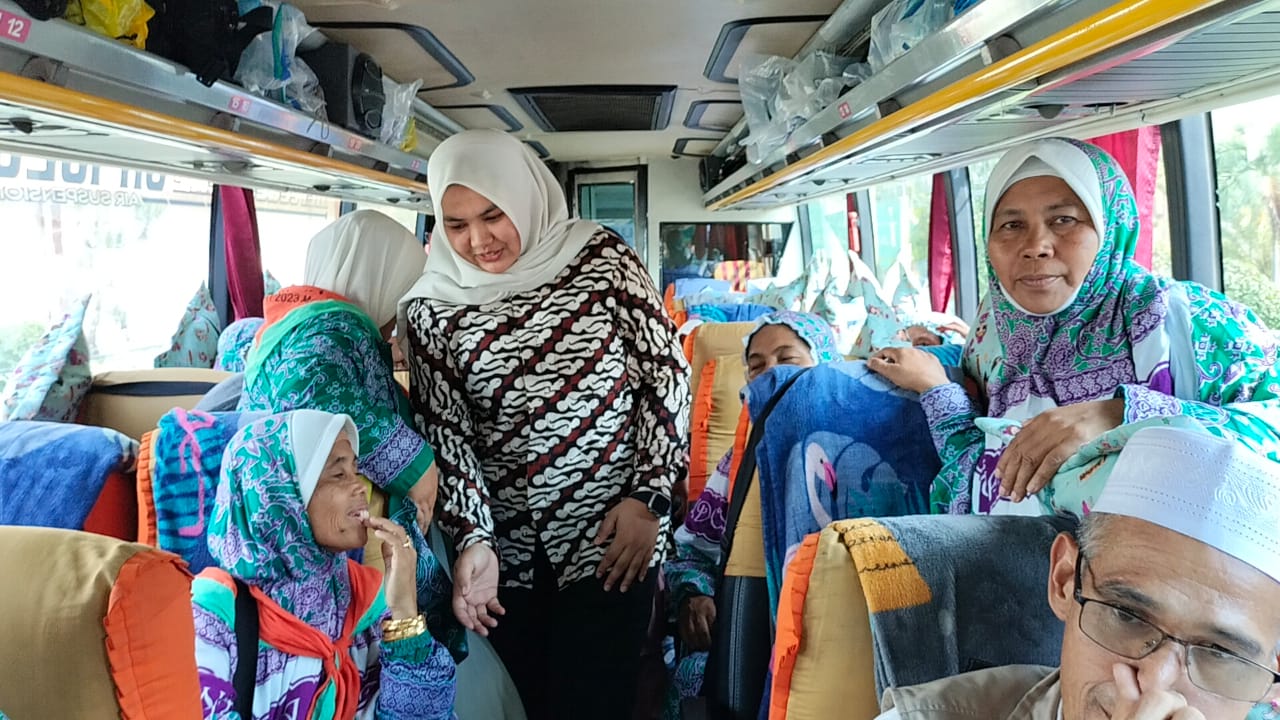 MEDAN (Waspada): Wakil Bupati Mandailing Natal Atika Azmi Utammi Nasution setelah kemarin mengantarkan ke Medan menuju tanah suci, kemudian kemarin menjemput, sekarang mengantarkan 151 jemaah haji Kloter 18 asal Madina sampai kampung halaman di Madina menuju Masjid Agung Nur Ala Nur, Panyabungan.