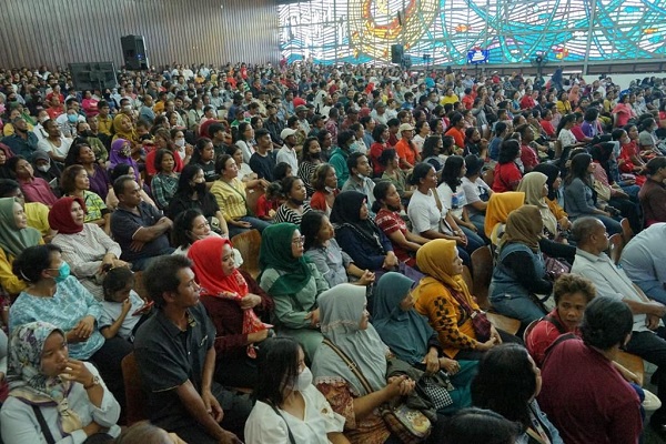 PEMATANGSIANTAR (Waspada): Ribuan pelaku UMKM di Kota Pematangsiantar antusias menghadiri acara DJKI (Direktorat Jenderal Kekayaan Intelekrual) Mendengar digelar di Aula Kampus Nommensen Jalan Sangnaualuh, Kec. Siantar Timur, Kota Pematangsiantar, Rabu (29/3/2023).