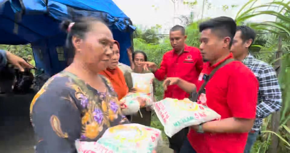 Penyaluran bantuan bahan pangan kepada ratusan warga terdampak banjir di Desa Gambus Laut, Kecamatan Lima Puluh Pesisir berlangsung hingga malam oleh tim relawan Kadin bersama Camat Lima Puluh Pesisir mendatangi tempat tinggal warga.