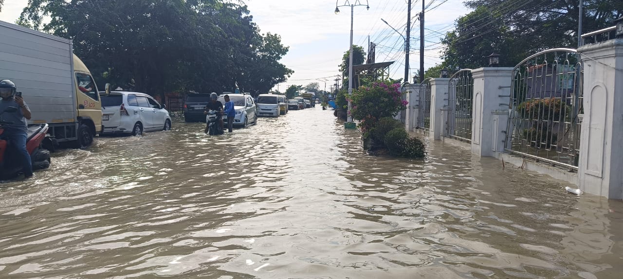 SEIRAMPAH (Waspada.id): Banjir di Serdangbedagai (Sergai) kian meluas. Kini kondisi air telah merendam Jalinsum Medan – Tebingtinggi, tepatnya di Seirampah, sekaligus merendam perkantoran Pemkab Sergai, Sabtu (29/11/2025).