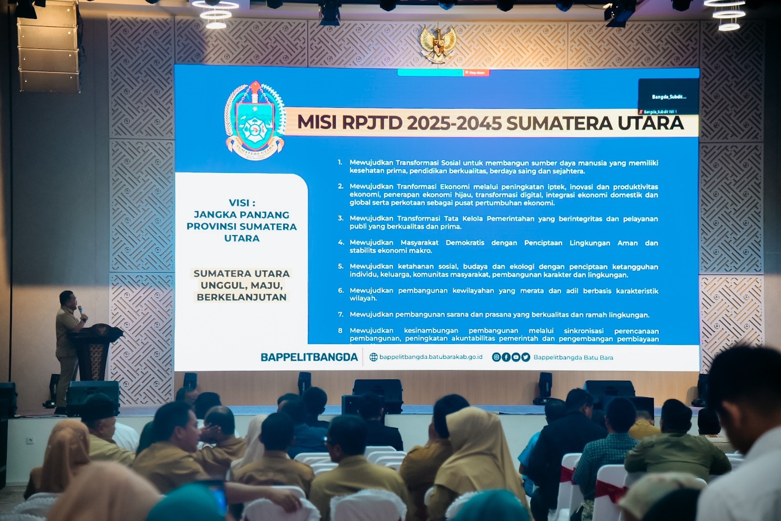 Hal itu dirumuskan dalam Rencana Pembangunan Jangka Panjang Daerah (RPJPD) Tahun 2025-2045 di aula kantor Bupati Batubara, Jalan Lintas Sumatera, Kecamatan Limapuluh, Selasa (23/4).