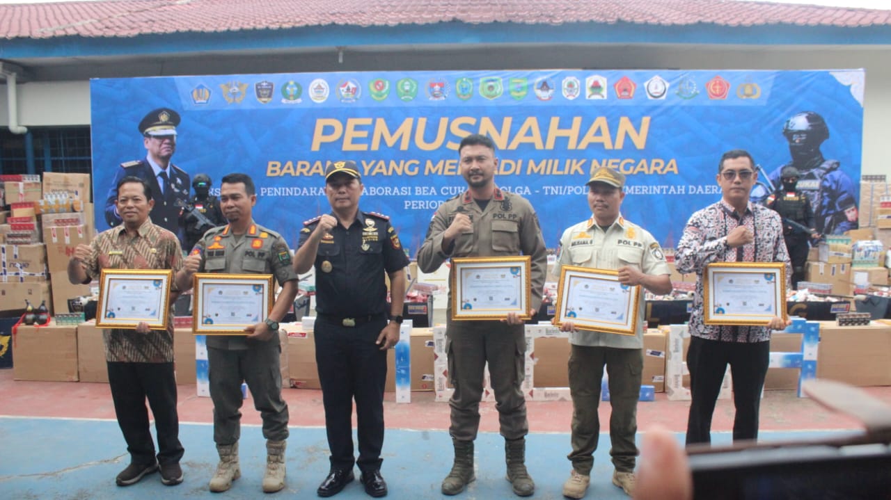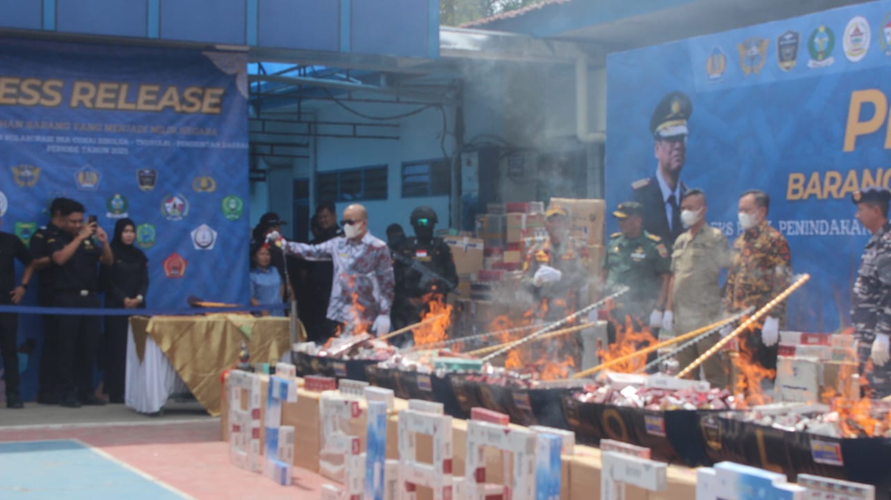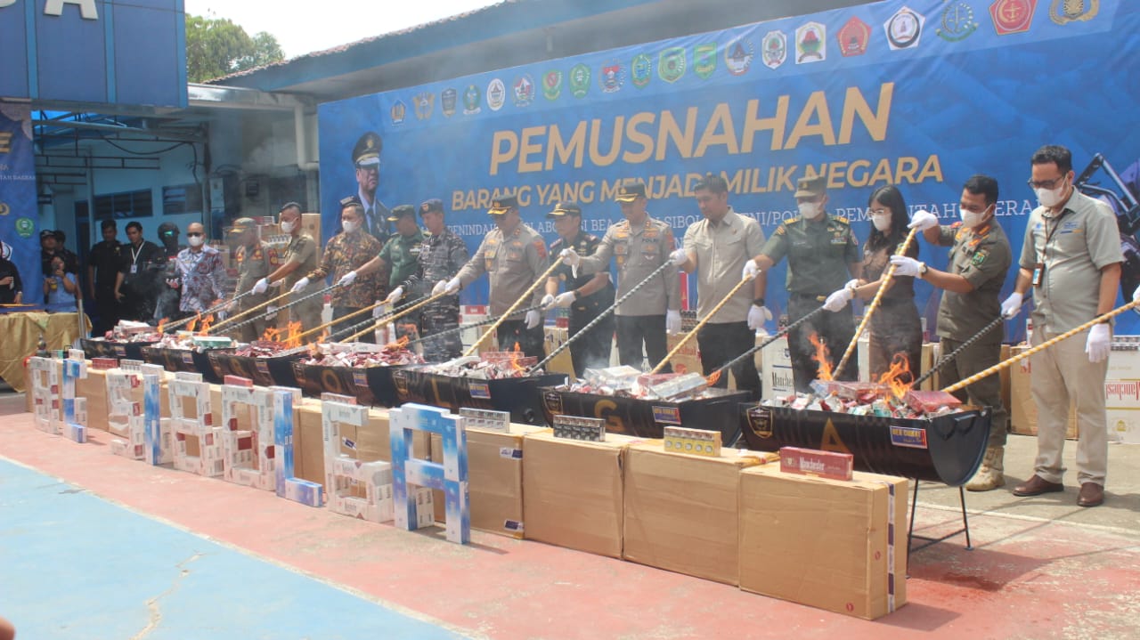 Kamis (6/11), Bea Cukai Sibolga memusnahkan lebih dari 1,3 juta batang rokok ilegal dan 14,4 liter minuman mengandung etil alkohol (MMEA) dengan nilai mencapai Rp1,88 miliar.