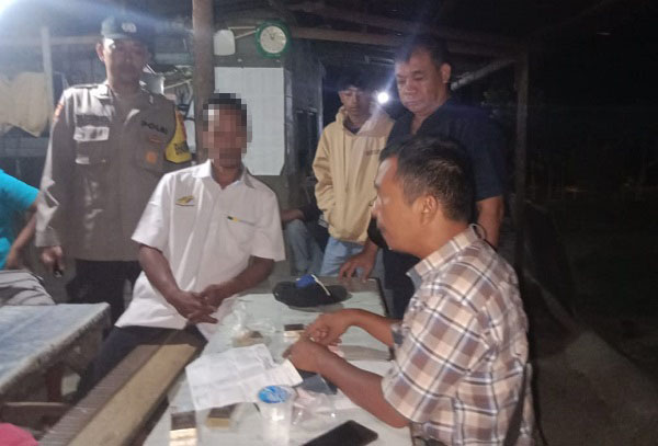 Petugas Polsek Perdagangan saat mengamankan KI (baju putih) di warung Boru Sidabutar di Sukarakyat 1 Kelurahan Kerasaan.(Waspada/ist).