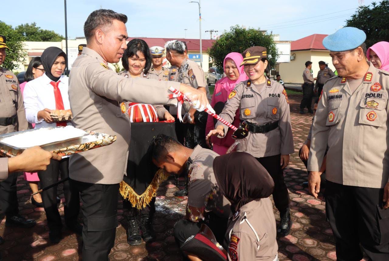 Sebagai kegiatan penutup pada rangkaian HUT ke-77 Bhayangkara, Kapolres Batubara, AKBP Jose DC Fernandez pimpin langsung upacara kenaikan pangkat 18 orang personel Polres Batubara.(a37)