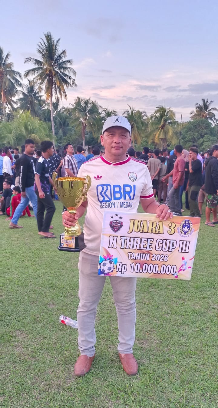 AIRJOMAN (Waspada.id) : Tim sepak bola Bank Rakyat Indonesia Branch Office Tanjungbalai meraih juara III Turnamen Sepak Bola N Three Cup III. Kemenangan diraih atas Buaya FC dengan skor 2–1 di Lapangan Bola Pondok Melati, Air Joman, Minggu (8/2).